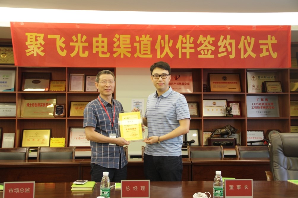 簽約之后,高總、邢董分別授權(quán)各供應(yīng)商成為聚飛光電金牌代理商,曾廣全、李運(yùn)華、曲德久、蔡良等領(lǐng)導(dǎo)代表聚飛授權(quán)各供應(yīng)商成為聚飛光電銀牌代理商。根據(jù)聚飛光電《渠道代理商?管理辦法》,金銀牌代理商授權(quán)有效期三年。